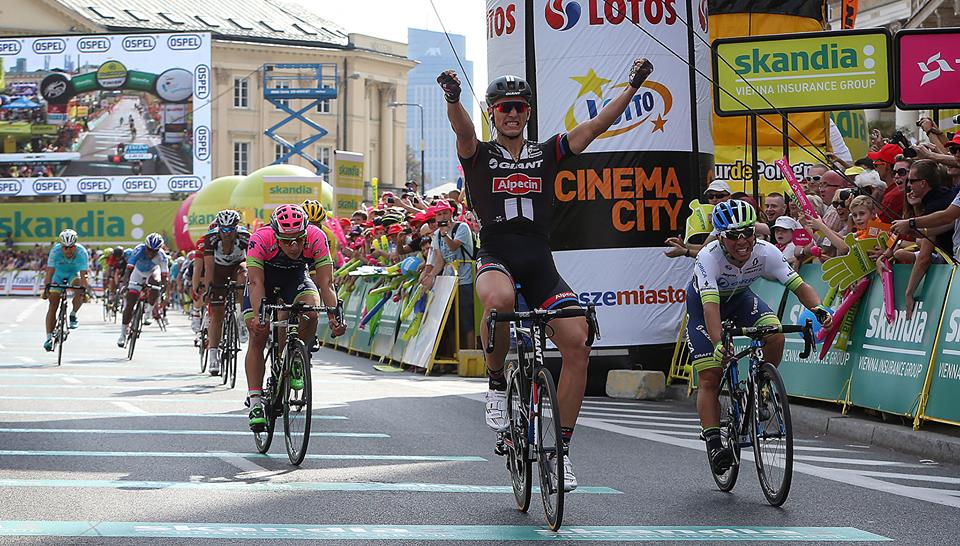 Na primeira etapa no circuito de 12.2 km pelas ruas de Varsóvia, o alemão Marcel Kittel deixou sua marca ao retornar às competições após seu afastamento por problemas de saúde e se impôs com todo estilo no sprint, superando o australiano Caleb Ewans/Orica e o italiano Nicolo Bonifazio/Lampre. Na guerra Orica-Green Edge contra Giant-Alpecin, os homens de Kittel fizeram melhor trabalho deixando-o de cara para a curva que levava para a reta de chegada.