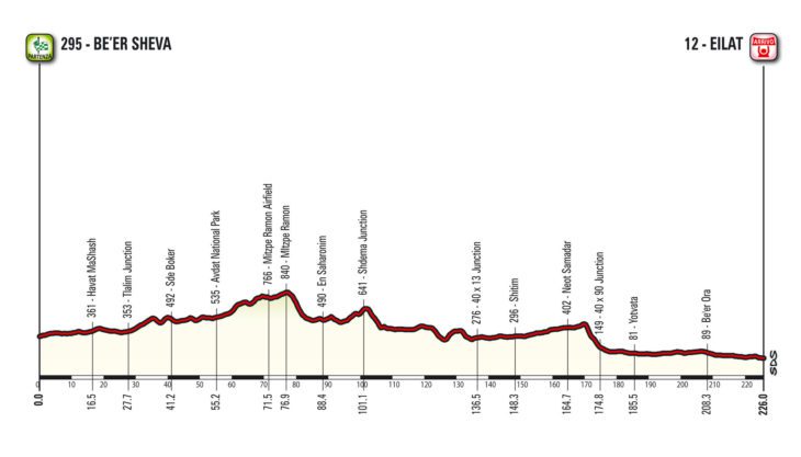 O último dia do pelotão em Israel, reserva 226 km entre Be’er Sheva e Eilat, às margens do Mar Vermelho, no Golfo de Aqaba. Não é uma etapa difícil, mas o sobe e desce servirá para desgastar o pelotão antes da entrada no deserto de Negev, depois o trajeto é uma longa descida até Eilat. Mesmo antes de ter todo o percurso definido, essa terceira etapa é candidata a ser a mais longa do Giro2018. Após a competição, acontece o primeiro dia de descanso, quando o pelotão se descolará em voos charter em direção à Siciclia.