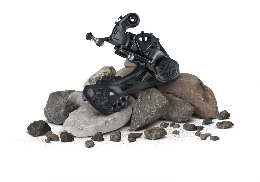O câmbio do grupo EkarTM foi desenvolvido pensando no gravel, oferecendo mudanças de marchas curtas, firmes e uniformemente espaçadas o que possibilitam um melhor controle da cadencia em qualquer situação e segundo a marca um dos mais leves .
