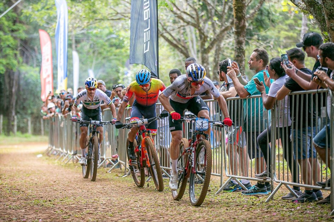 A prova mais aguardada do final de semana na CIMTB – o Cross Country Olímpico Hors Class – XCO HC – era sem dúvida a da Elite Masculina, onde era certo que o ombro a ombro visto na sexta entre Avancini/Vidaurre/José Gabriel e o no sábado entre Avancini e José Gabriel – com Gustavo Xavier procurando entrar na disputa, se repetiria.