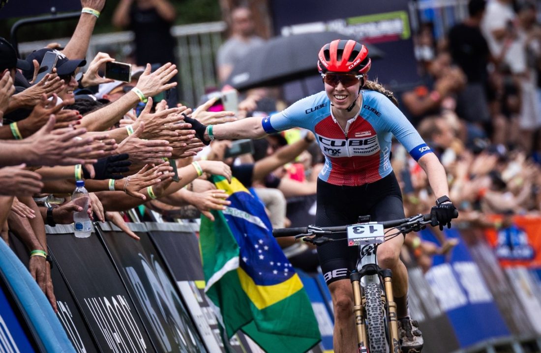 A brasileira Giugiu Morgen ficou na sétima posição, um resultado que ainda não supera seu desempenho no XCO da etapa da Copa do Mundo de Petrópolis em 2022 quando terminou em 5º lugar, mas em uma prova onde as ponteiras destruíram o pelotão com um ritmo muito intenso e com o 4º lugar que ela obteve no XCC na sexta-feira é possível perceber a sua evolução com a passagem para uma equipe de formação internacional.