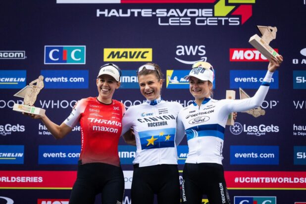 A sueca Jenny Rissveds (Canyon CLLCTV XCO) não vencia uma etapa da Copa do Mundo em um circuito curto – XCC – onde sua explosão e ataque fazem a diferença – desde junho de 2023, e em Les Gets fez seu jogo, forçando o ritmo, indo para a ponta e dividindo o pelotão, de forma determinante, a duas voltas do fim e superar Alessandra Keller (Thӧmus Maxon) na subida brutalmente icônica de Les Gets, enquanto a segunda colocada, Keller, na disputa pela classificação geral obteve grandes ganhos sobre a líder geral Evie Richards (Trek Factory Racing- Pirelli), encurtando a diferença para 40 pontos.
