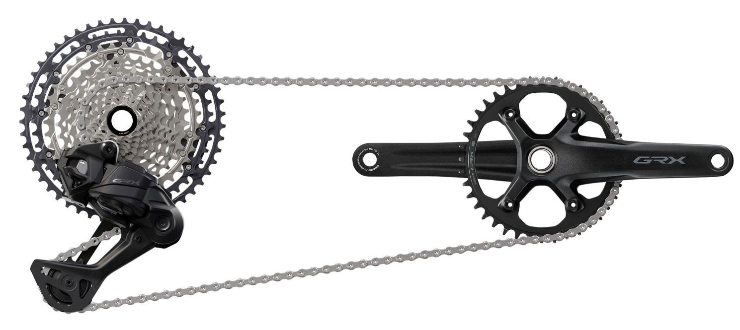 A nova série de componentes GRX de 12 velocidades – da linha RX717 utiliza a plataforma de câmbio eletrônico Di2 da Shimano, e Rinclui uma alavanca Dual Control para o lado direito, duas opções de alavanca de freio para o lado esquerdo (uma com a marca GRX e a outra versão apenas com a marca Shimano – em teses mais econômica) e o câmbio traseiro GRX RX717 que trabalha em combinação com o cassete de 12 velocidades 10-51T, oferecendo a amplitude, a confiabilidade e a velocidade de troca de marchas necessárias para qualquer aventura off-road e entrando para dividir o mercado conquistado pela Sram com o seu Rival AXS XPLR.