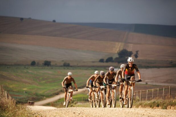 Em uma das etapas mais longas da história da Absa Cape Epic, a combinação de estradas asfaltadas, trilhas singletrack e estradas de terra proporcionou um ritmo acelerado na frente da corrida de elite masculina. Na metade do percurso, o grupo incluía quase todas as equipes de elite e, com poucas subidas para quebrar o ritmo, a etapa parecia que seria decidida em um sprint. Poré, Pritzen e Stehli estavam ansiosos para mudar o jogo.