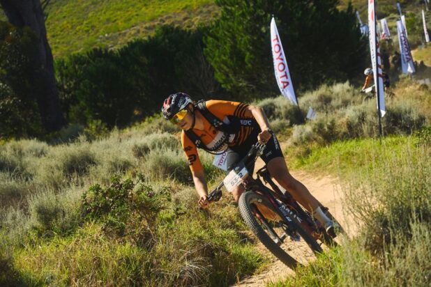 A dupla da Toyota Specialized Imbuko chegou a abrir uma vantagem de 30 segundos antes de Beers ser forçado a parar brevemente para consertar um problema no câmbio. Beers remontou rapidamente, ultrapassou os italianos e alcançou Nortje quando a corrida entrou nas famosas trilhas locais, incluindo a Neverending Trail em Jonkershoek.