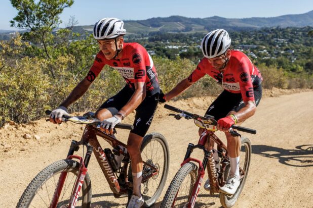 Beers se esforçou para empurrar o parceiro sempre que possível, enquanto seus companheiros de equipe da Toyota Specialized Imbuko, Marco Joubert e Travis Stedman, estavam sempre por perto, incentivando e ditando o ritmo na frente quando podiam.